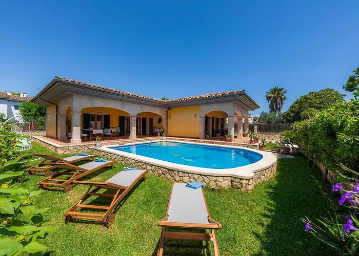 La Vieille ville d'Alcúdia est à 2 km de Villa Ca Na Rosa de 210 m^2, et l'aéroport de Palma de Majorque est à 47 minutes en voiture. La villa fournit des pièces dotées d'un patio, une TV par satellite et un équipement de repassage.